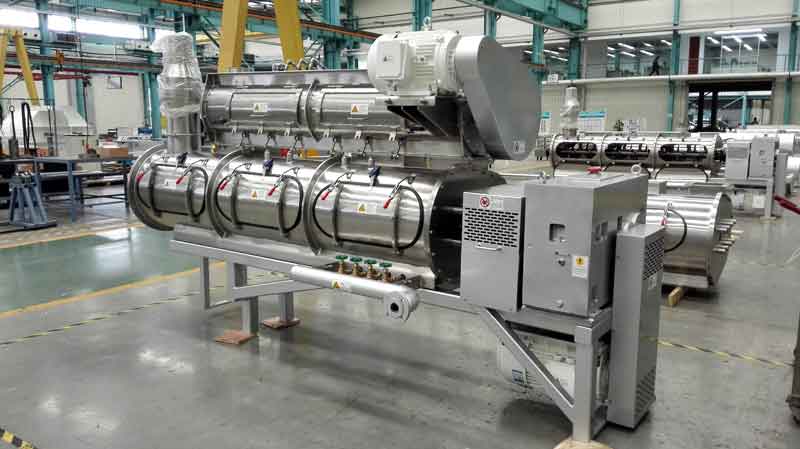 狗糧加工設備JNK200-T5M:1。JNK200-T5M型狗糧加工設備安裝方便、出廠已經試機,狗糧機切刀采用直角切刀技術,調試簡單;2。狗糧設備的主軸和切刀小軸均可隨時注入耐高溫潤滑脂,延長狗糧機的軸承使用壽命;3。JNK200-T5M狗糧設備每小時生產狗糧顆粒200公斤。